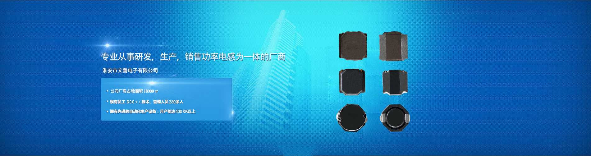 淮安市文善电子有限公司成立于2009年,是一家专业从事研发、生产、销售贴片电感为一体的厂商.公司现有员工600余人,管理及技术人员280余人,厂房占地面积18000㎡,建筑面积20000㎡. 拥有完善的实验设备、高效的自动化生产设备和精密的检测设备,可独自完成产品的信赖性试验、环保检测、镀层检测。公司已通过ISO9001 、ISO14001 、IATF16949 体系认证。 经过全员上下的不懈努力及雄厚的技术力量和优质的产品品质,已为一些知名台资、韩资、美资SMD生产企业OEM、ODM,并且得到他们的一致好评,愿为更多知名企业提供一流服务。在数字化时代,我们一如既往的秉承"团结拼搏,开拓创新,诚实守信,严谨高效"的企业理念;以"为客户创造持久的价值、为员工提供发展的机会"的公司使命;坚持“诚信为本”的经营原则,同合作伙伴(客户、供应商)共创辉煌明天!…